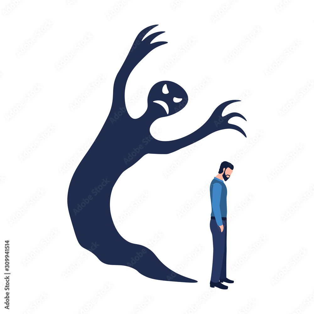 Concept Of Anxiety Disorders Mental Illness Stress And Depression A Man With Inner Fear Stands With